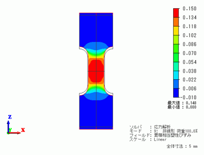 径の小さい部位において塑性ひずみが集中して発生していることが分かります。