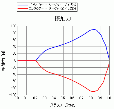 テーブル出力された接触力のZ成分をグラフにした結果を以下に示します。