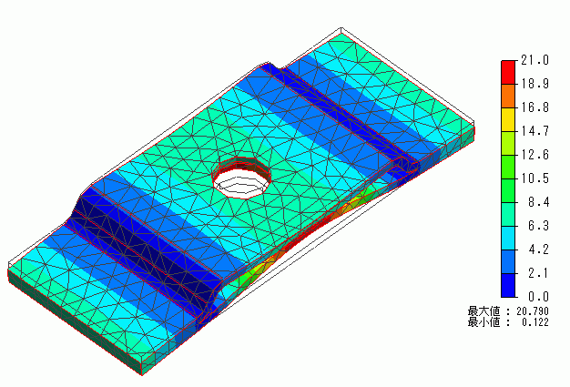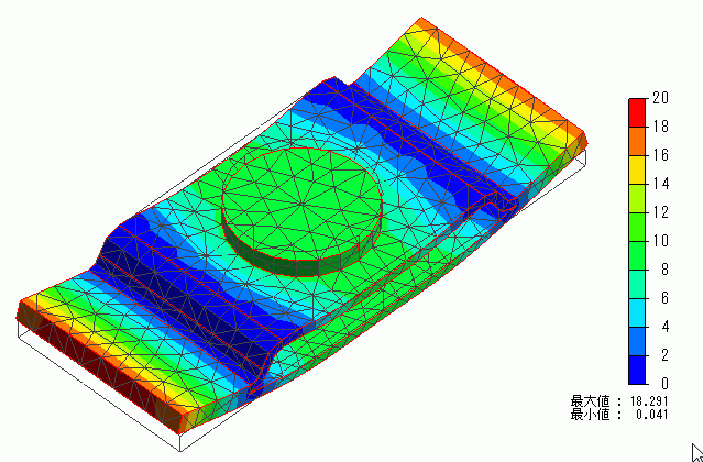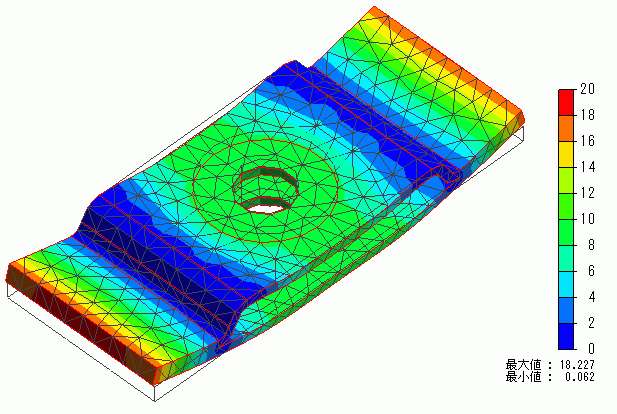 基本共振モードMode[0]の変位図を示します。コンター図は変位の大きさを示してます。