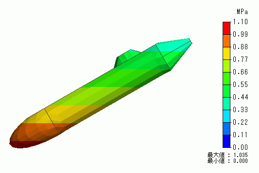 静水圧による変形をシミュレーションした例を示します。