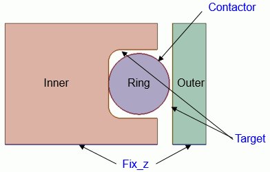 O-リングと周囲部材の間の接触が複雑になって接触解析が安定しないことが予想されます。