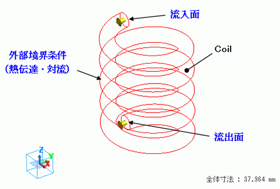 ヘリカルコイル(Coil)をらせんソリッドボディで定義しています。