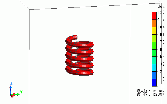 ヘリカルコイル(Coill)の温度が約130度まで上昇していることが分かります。
