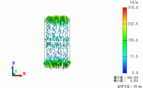 磁石の磁化の方向はデフォルトの方向(Z軸+方向)が設定されています。