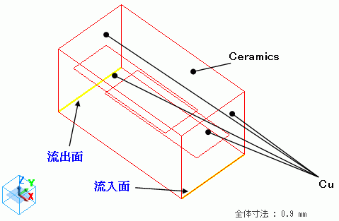 材料Cramicsは極めて導電率の低い導体として、導電率を以下のとおりに設定しています。