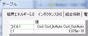 寄生インダクタンスの解析結果は、[解析結果]タブの、