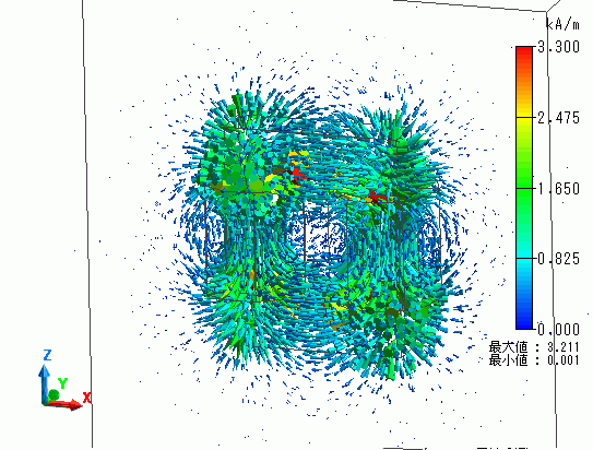 磁界ベクトルの解析結果を示します。