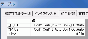 各インダクタンスと結合係数の解析結果は、[解析結果]タブの、