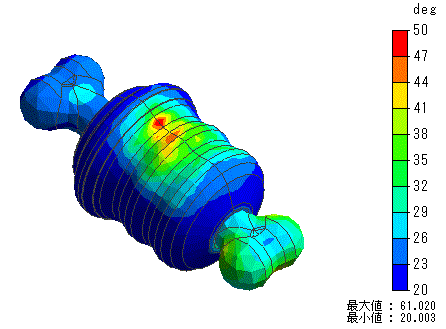 40[sec]後の温度のコンター図を確認すると、肉の温度分布を見ることができます。