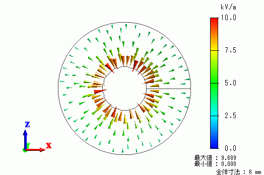 高周波ケーブルの基本構造である同軸線路を解析した事例を示します。