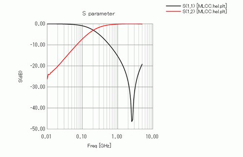 基板上に置いた積層コンデンサのSパラメータを求めます。