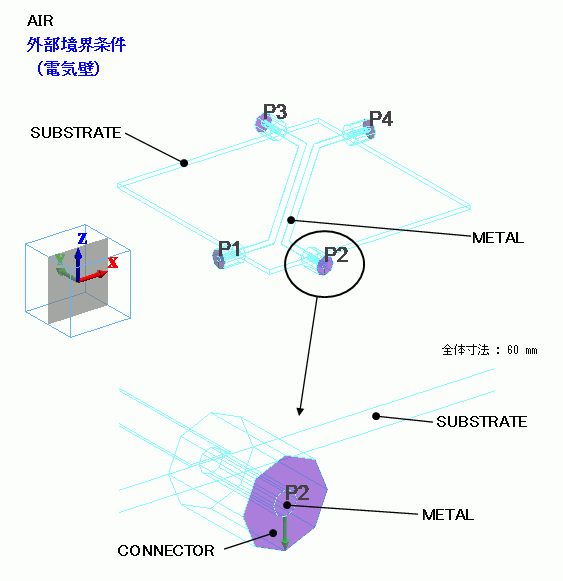 モデルの周囲の境界条件(外部境界条件)は、電気壁として解析しました。