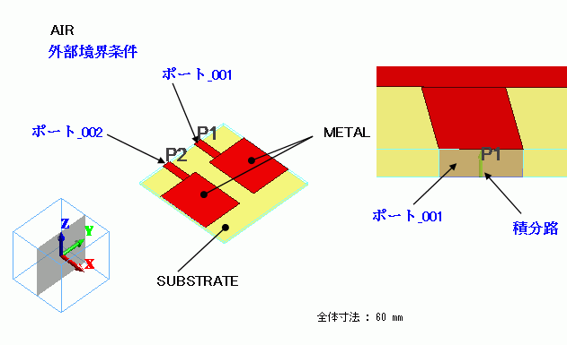 誘電体基板上に形成したパッチアンテナのアンテナ特性を解析した事例を示します。