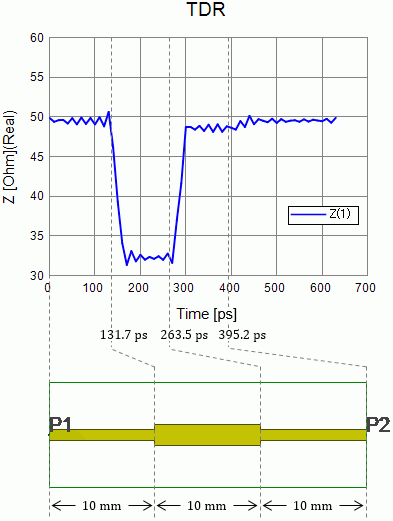図1に、解析の結果として得られるTDRのインピーダンスの時系列を表すグラフを示します。