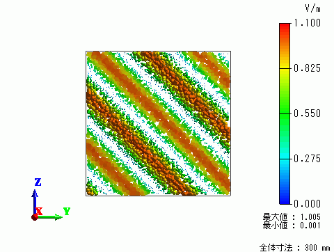 得られた電界フィールドを確認してみましょう。カラーバーの下に”最大値:1.005"の表記がありますが、