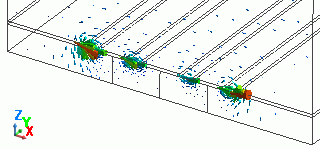 PORT1側から各信号線に個別に給電したときの電磁界を表示します。