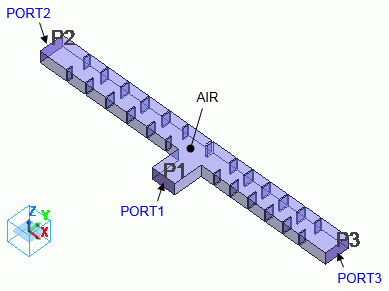 ここでは、ポート1(PORT1)から入った電磁波がどのように伝搬するかを確認します。