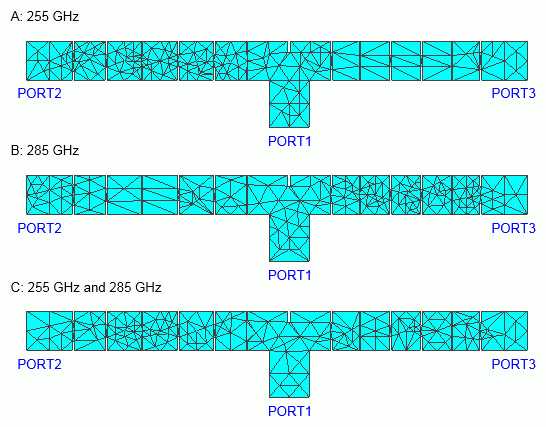 図4-Cは、参照周波数は285GHz(freq_ref = 285)としていますが、本例題のように[アダプティブメッシュの設定]で、