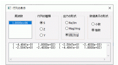 解析結果、チャート、SYZ行列、表示、行列の表示