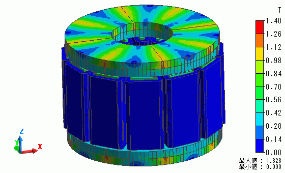 回転角度が0[deg]の時の磁束密度分布を示します。