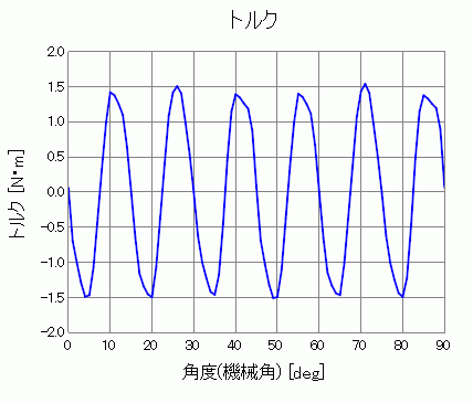 コギングトルク波形を示します。結果テーブルの「トルク[N・m]」に出力されます。