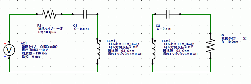 1次コイル(FEM1)側にAC電源を配置しています。