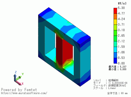 鉄損密度の解析結果を示します。