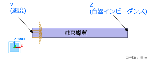 音響インピーダンスは、左から来た音波が反射せずに抜けていくように設定しました。