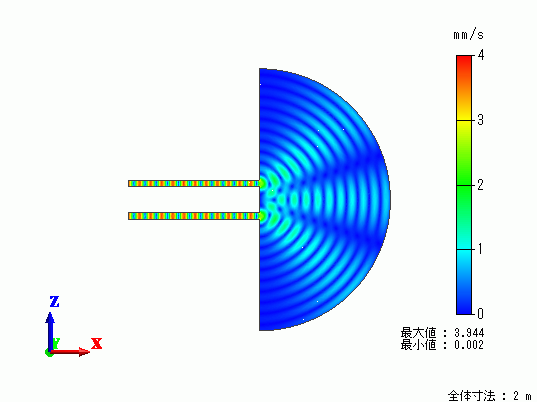 ホーム / 例題集 / 音波解析[Mach] / 例題3 干渉縞の計算(2次元)