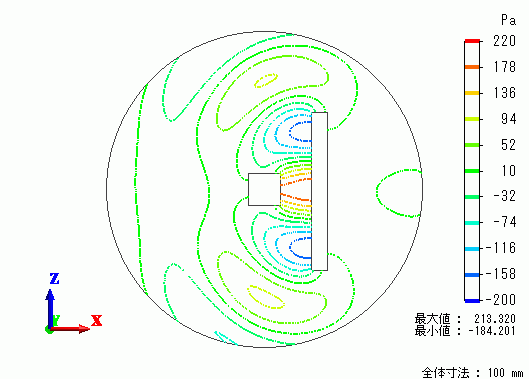 剛体壁の前面で励振し、周囲を開放境界条件を設定します。