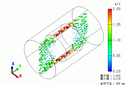 筒内に空気を送ったときの流れを定常解析した例を示します。