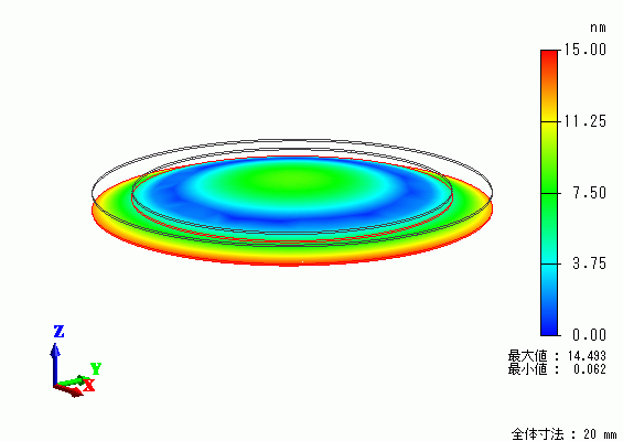 圧電素子の変位量を解析結果として示します。