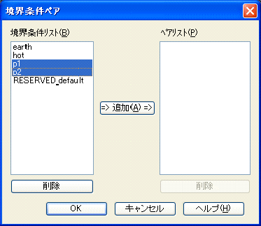 をクリックして、ペアリストに登録します。p1、p2を選択して追加をクリックします。