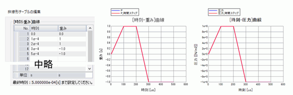2[Pa] [時間依存]にチェック [重み関数]入力は下図参照