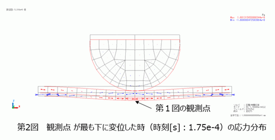 ただし、1/2モデルの接触力が表示されていますので、全体モデルの接触力は、この2倍になります。