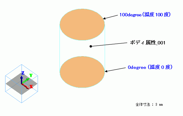 円柱のソリッドボディを定義し、材料定数には線膨張係数の温度依存性を定義しています。