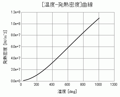 上式を用いて、温度-発熱密度曲線の非線形テーブル設定を以下のように設定しています。