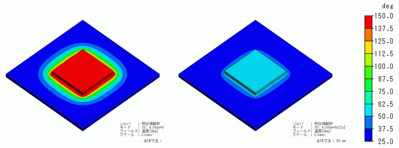 としていますので初期温度25度から600秒間における温度分布の変化を解析すること