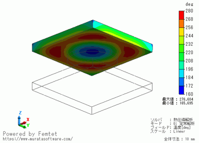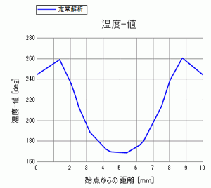 上の板の中央部の温度が約160度となっており、周囲の260度と比較して、温度が低くなっていることが分かります。