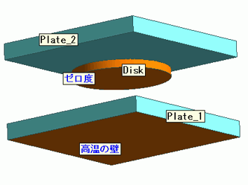 Disk表面に「ゼロ度」、Plate_1表面に「高温の壁」という境界条件を設定していますので、それが表示されています。