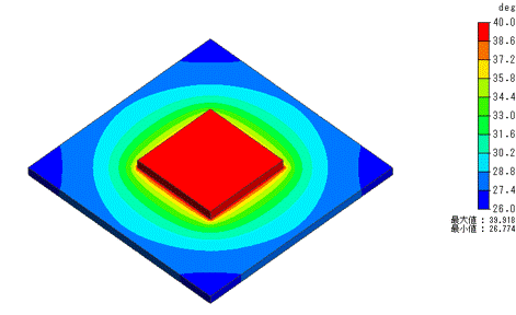 基板とIC部の温度分布の解析結果を示します。