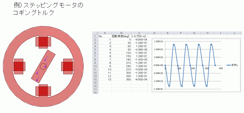 具体的には各角度で静解析を行い、トルクを算出します。