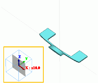 指定した倍率でモデルが拡大縮小表示されます。 (この例では、異方性ズームによりモデルがX方向に10倍拡大表示されます。)