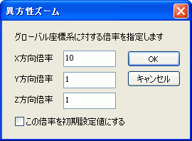 ダイアログに各軸ごとの倍率を入力します。 (ここでは、例としてX方向倍率を10に設定しています。)