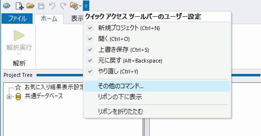 1-B.[クイックアクセスツールバーのカスタマイズ]から[その他のコマンド]をクリック