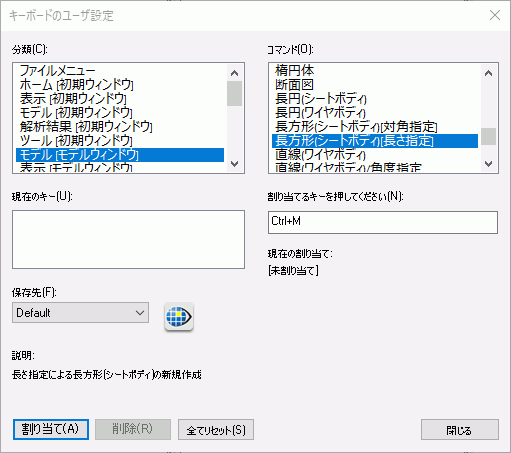 3.分類とコマンドからアクセラレータキーを設定したいメニューを選択し、キーを割り当て