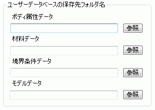 ユーザーの設定した、境界条件データを保存するフォルダを指定します。 [参照]ボタンを押すと、フォルダの位置を設定するダイアログが起動します。 |