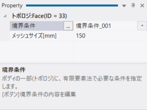 [1つのトポロジを選択] 設定されている境界条件名称が表示されます。 [複数トポロジを選択] 選択されているトポロジがすべて同じ境界条件の場合、その名称が表示されます。 それ以外は空白で表示されます。