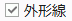 外形線の表示 モデル外形線表示のON/OFFが設定できます。 詳細は描画設定の「表示」を参照してください。