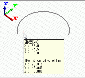 同じ位置に設定され、連続して円弧のスケッチができます。